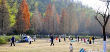 當天上午8時30分,一架黃白涂裝的億航EH216飛行器從人工湖旁的起降點平穩垂直起飛。